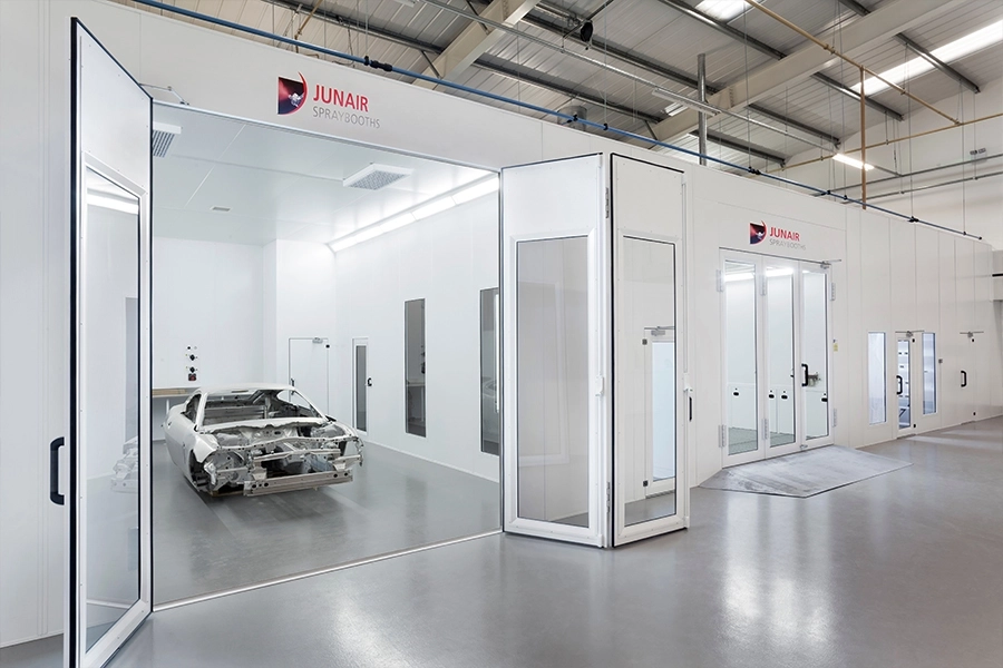 Junair has a reputation for being at the forefront of innovation when it comes to automotive spray booth development, providing energy efficient solutions, improving production efficiency, enhancing performance and with achieving the ultimate goal of increasing profitability to our clientele. The integrated design flexibility and Junair’s well-established manufacturing channels allow any automotive spray booth to be specifically tailored to meet required individual dimensions and performance capabilities. Features across the automotive spray booth range include: